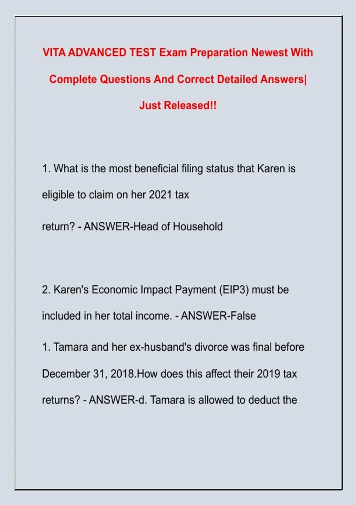 VITA ADVANCED TEST Exam Preparation Newest With Complete Questions And Correct Detailed Answers| Just Released!!