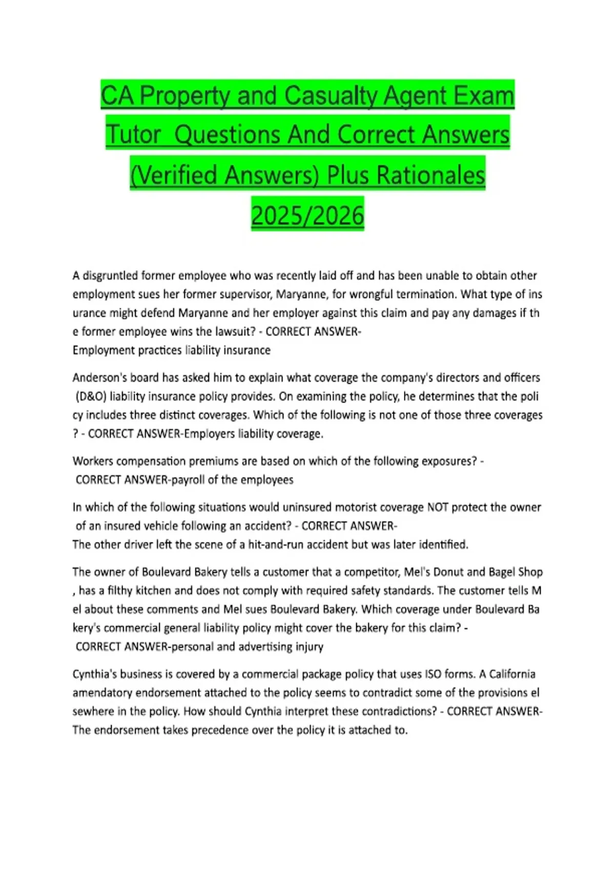 CA Property And Casualty Exam Final Pra...d Answers) Latest Updated