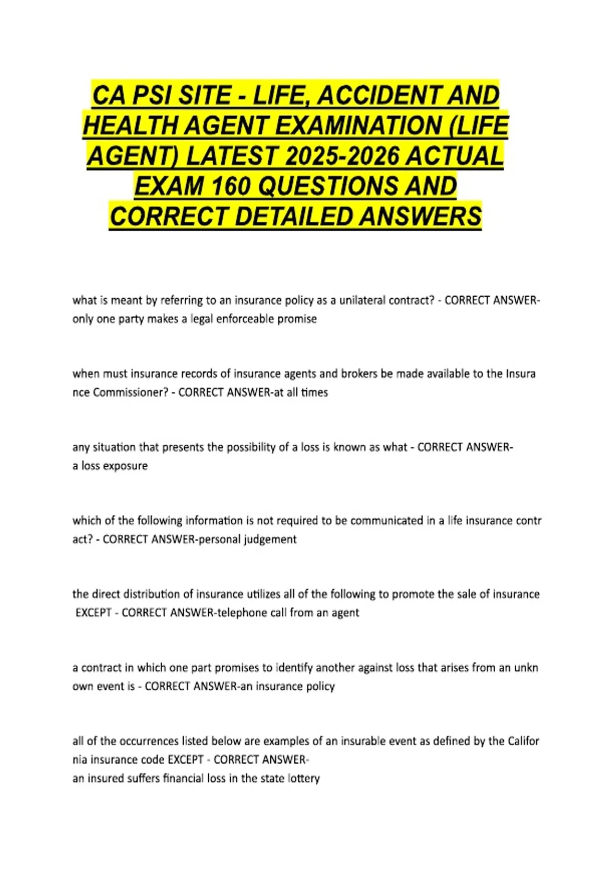 CA PSI SITE - LIFE, ACCIDENT AND HEALTH...TIONS AND CORRECT DETAILED ANSWERS