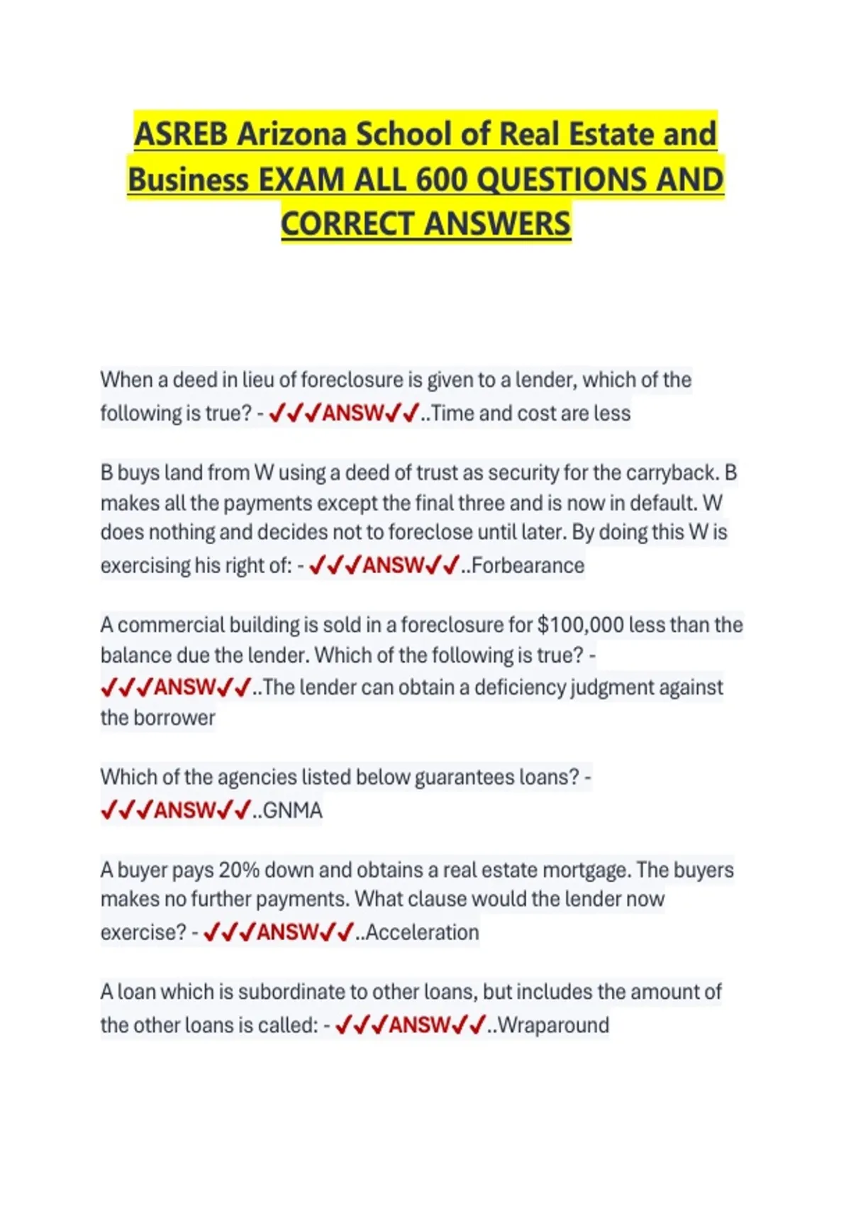Business EXAM ALL 600 QUESTIONS AND