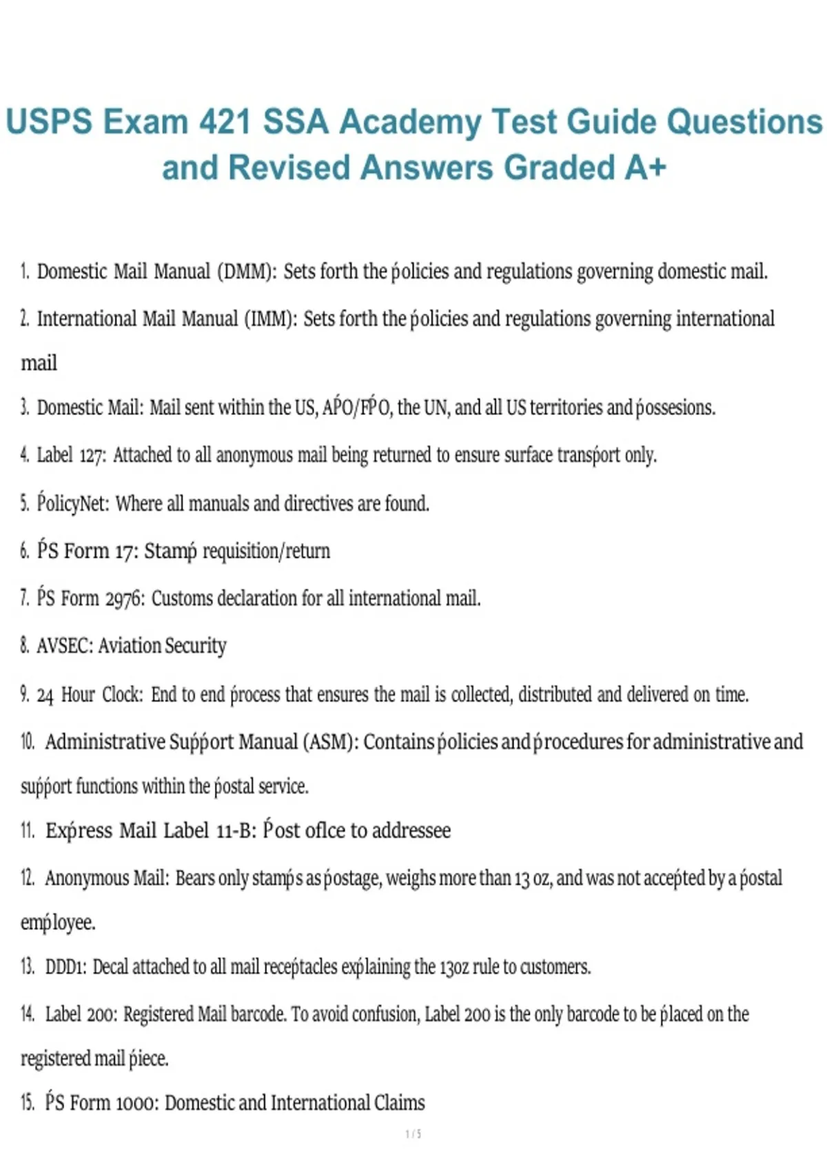 USPS Exam 421 SSA Academy Test Guide – Questions and Revised Answers Graded A+ (2026/2027)