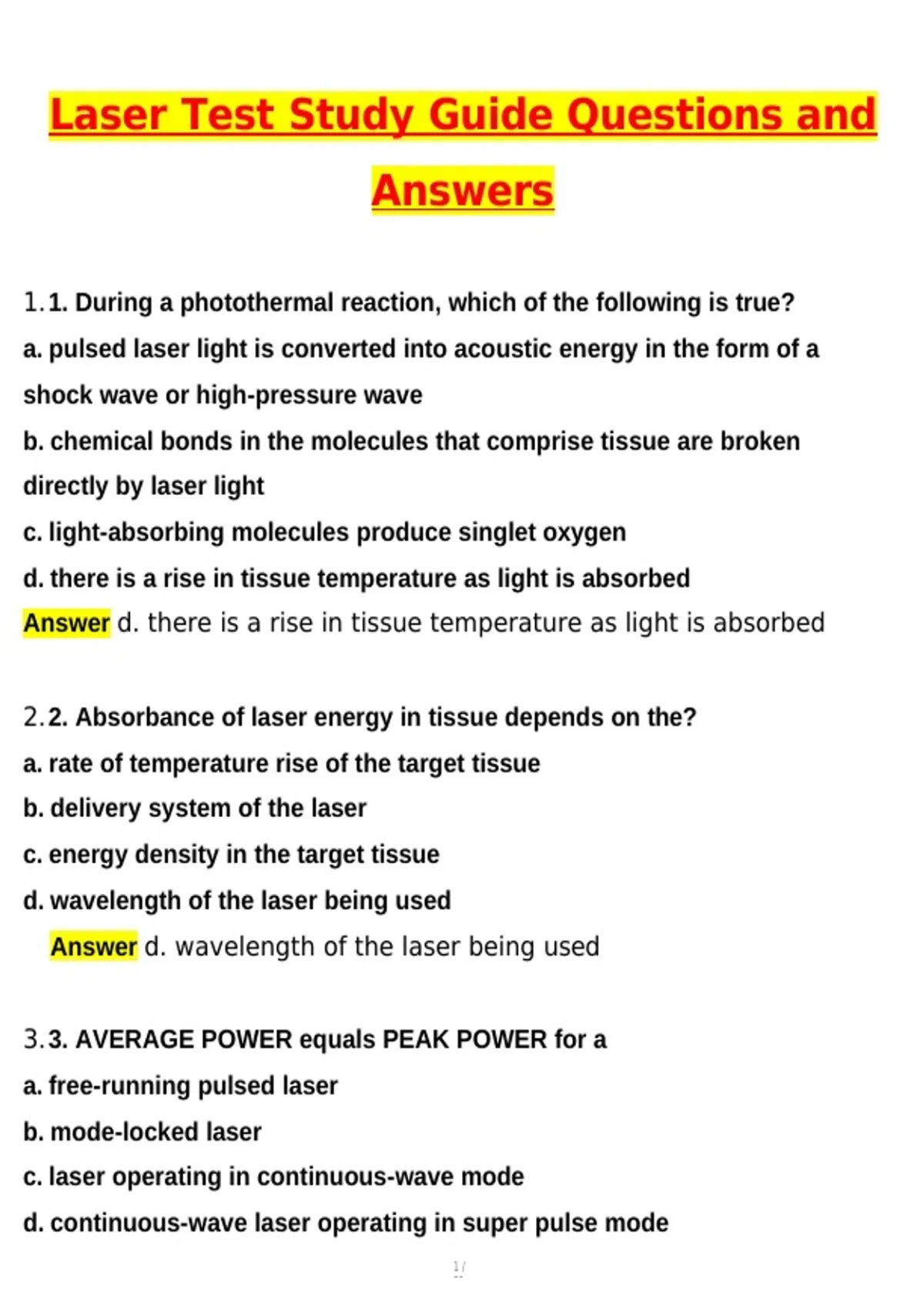 4.4. A CO2 continuous-wave laser used at 5W for 10seconds has a peak