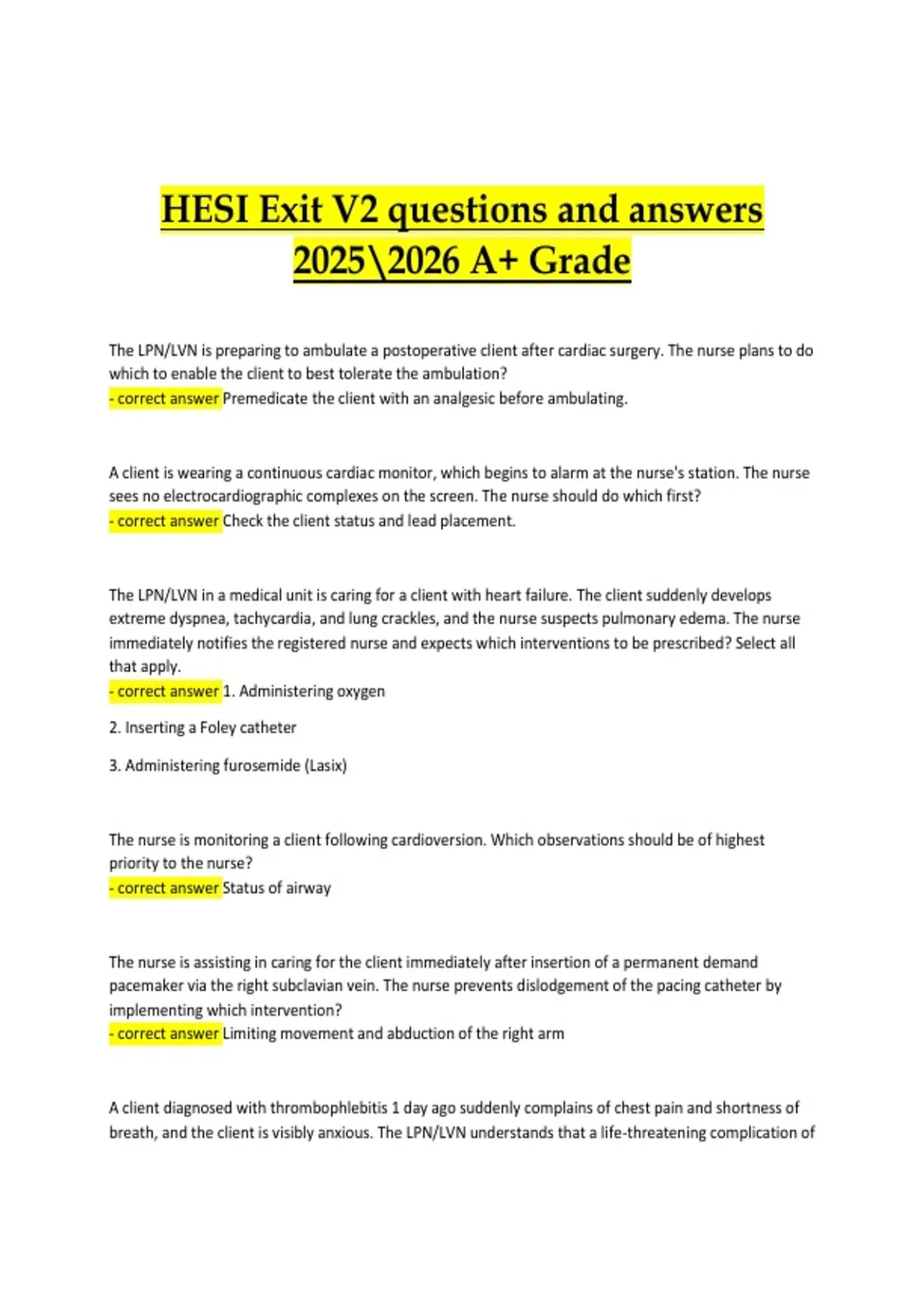 breath, and the client is visibly anxious. The LPN/LVN understands that a life-threatening complication of