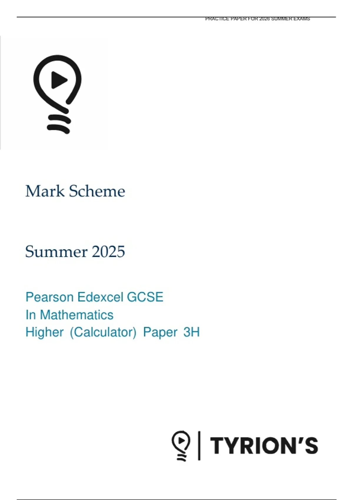 Mark Scheme for Edexcel GCSE Mathematics Higher Paper 3