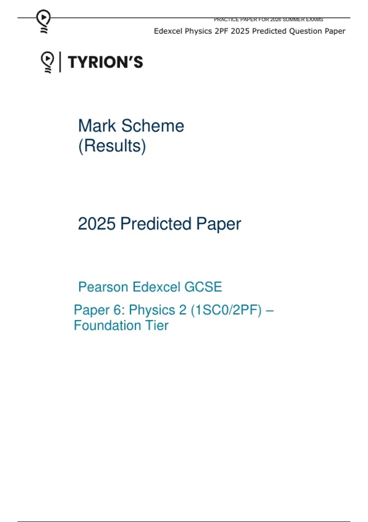 Edexcel Physics 2PF 2025 Predicted Question Paper