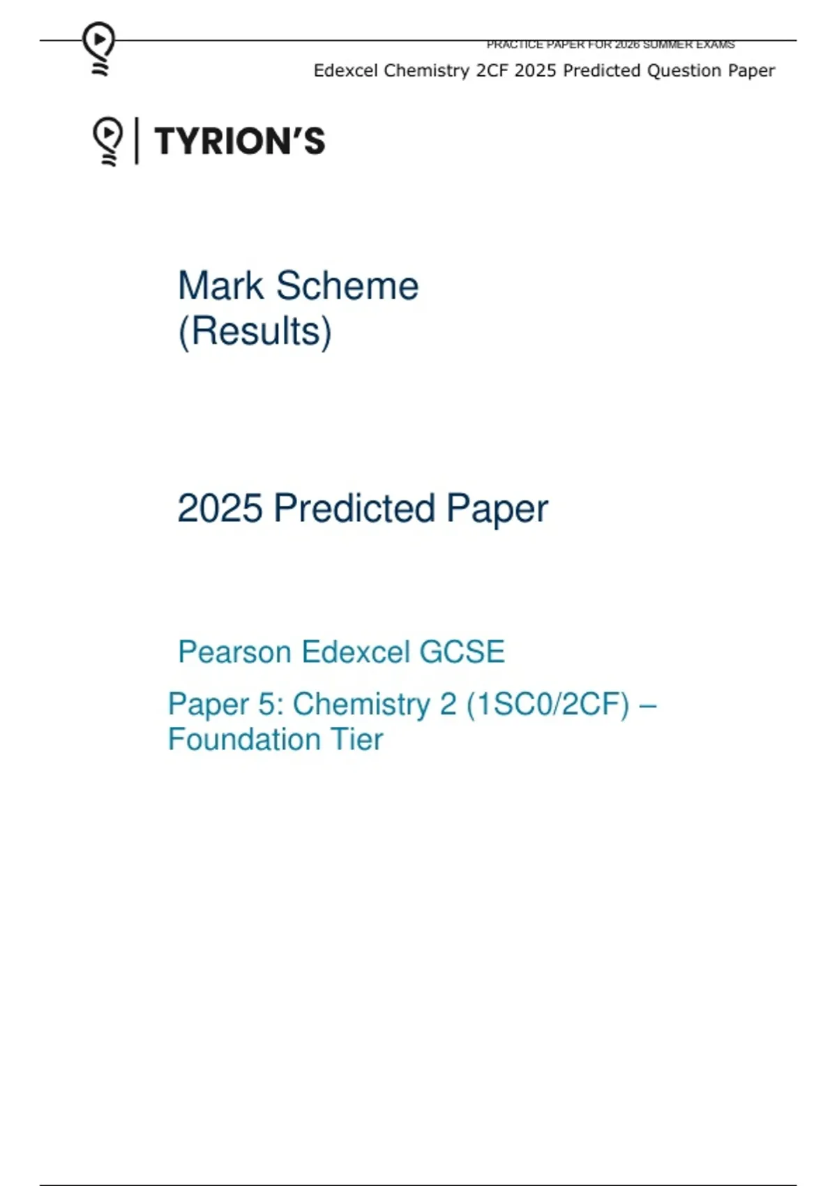 Edexcel Chemistry 2CF 2025 Predicted Question Paper