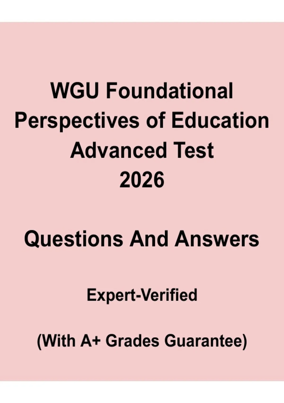 This WGU Foundational Perspectives of Education Study Guide is designed to support students enrolled in Western Governors University education programs. It covers key educational philosophies, historical foundations, sociocultural perspectives, ethics, and contemporary issues in education, aligned with WGU course competencies.