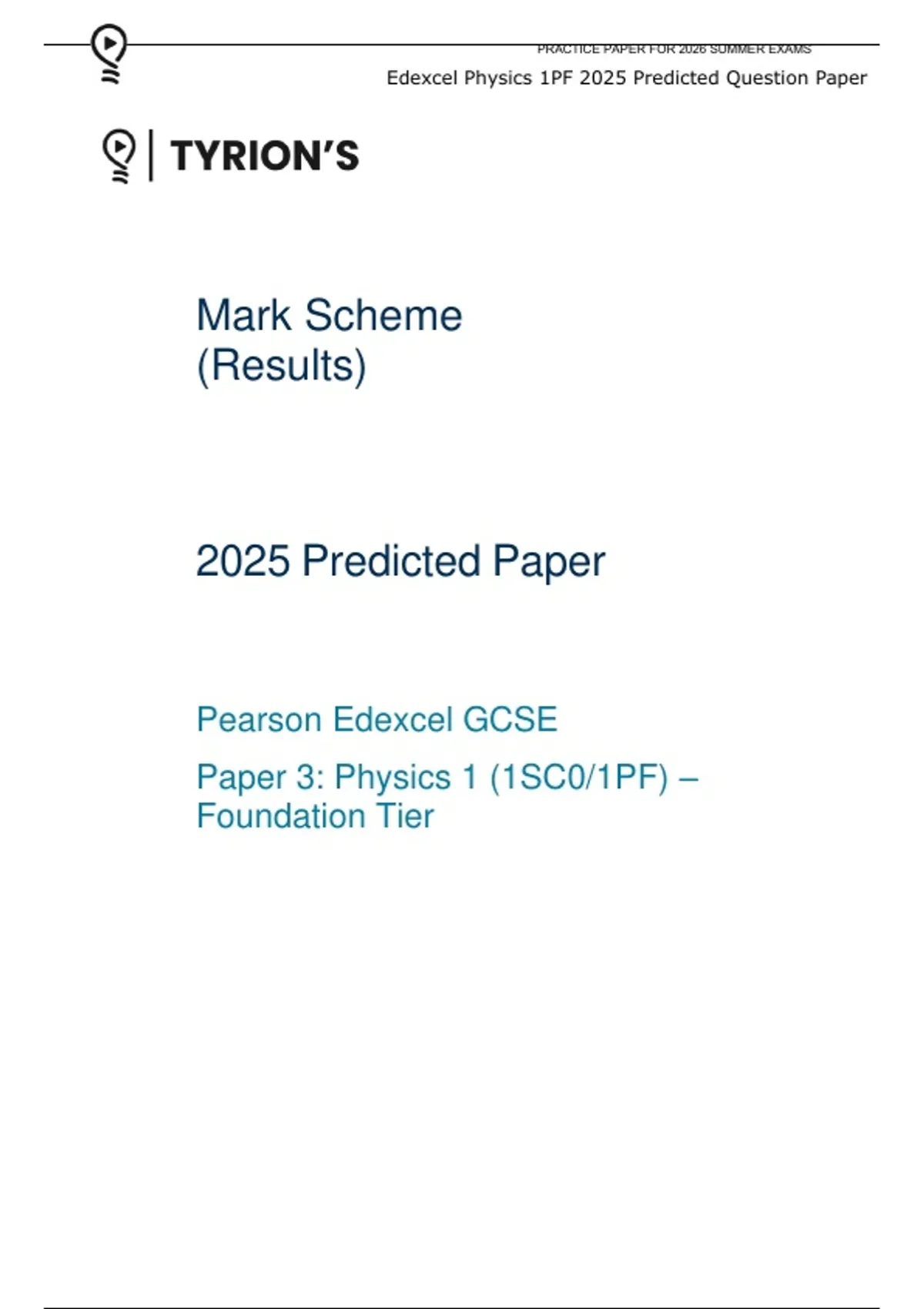 Edexcel Physics 1PF 2025 Predicted Question Paper
