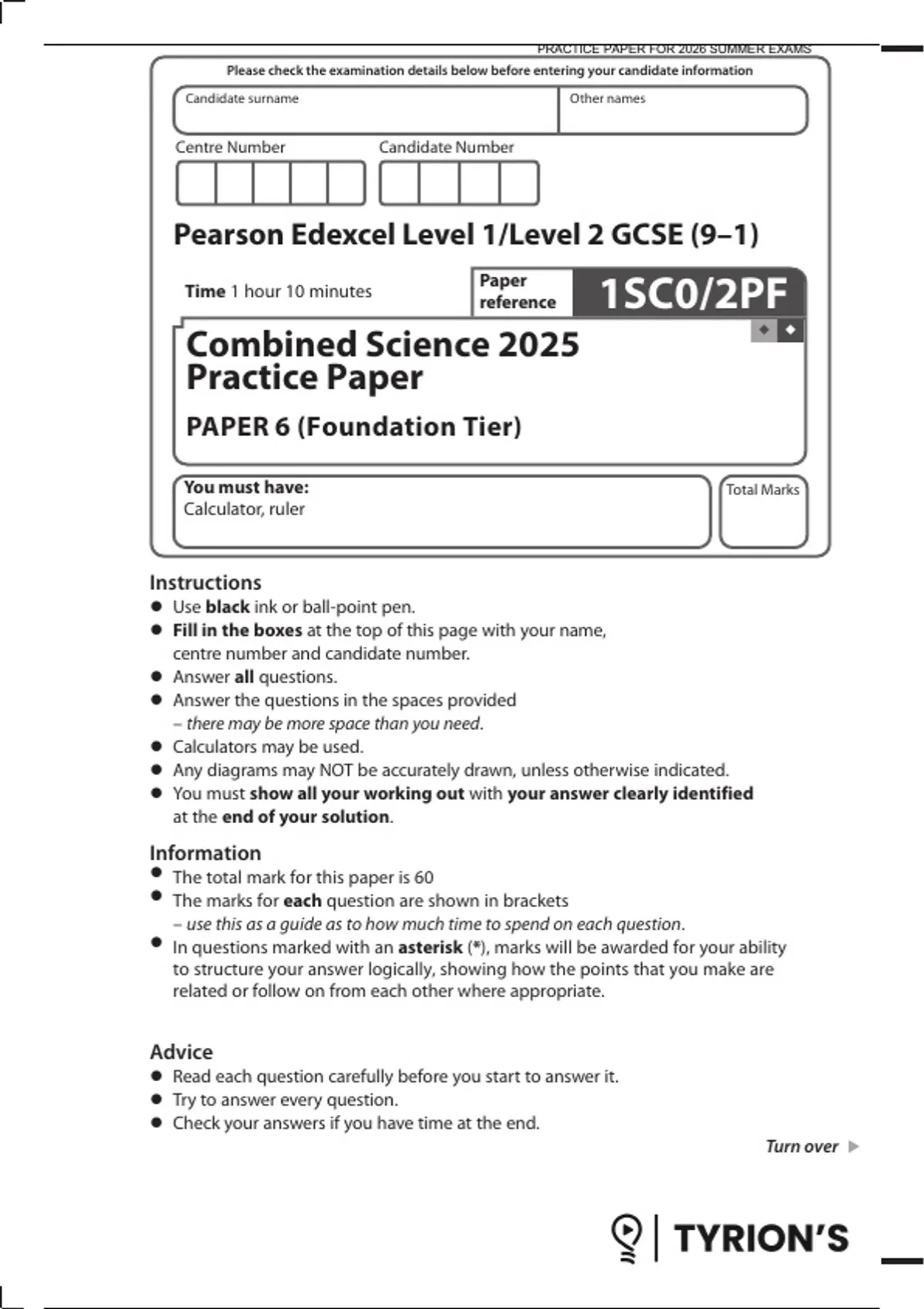 • The total mark for this paper is 60