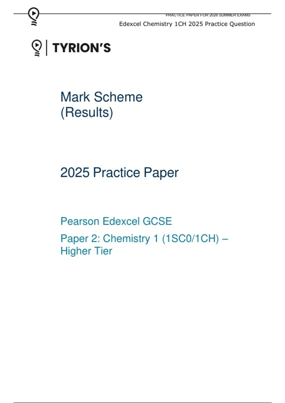 EDEXCEL GCSE COMBINED SCIENCE CHEMISTRY 2H 2025 PREDICTED MARK SCHEME 2026 PRACTICE PAPER