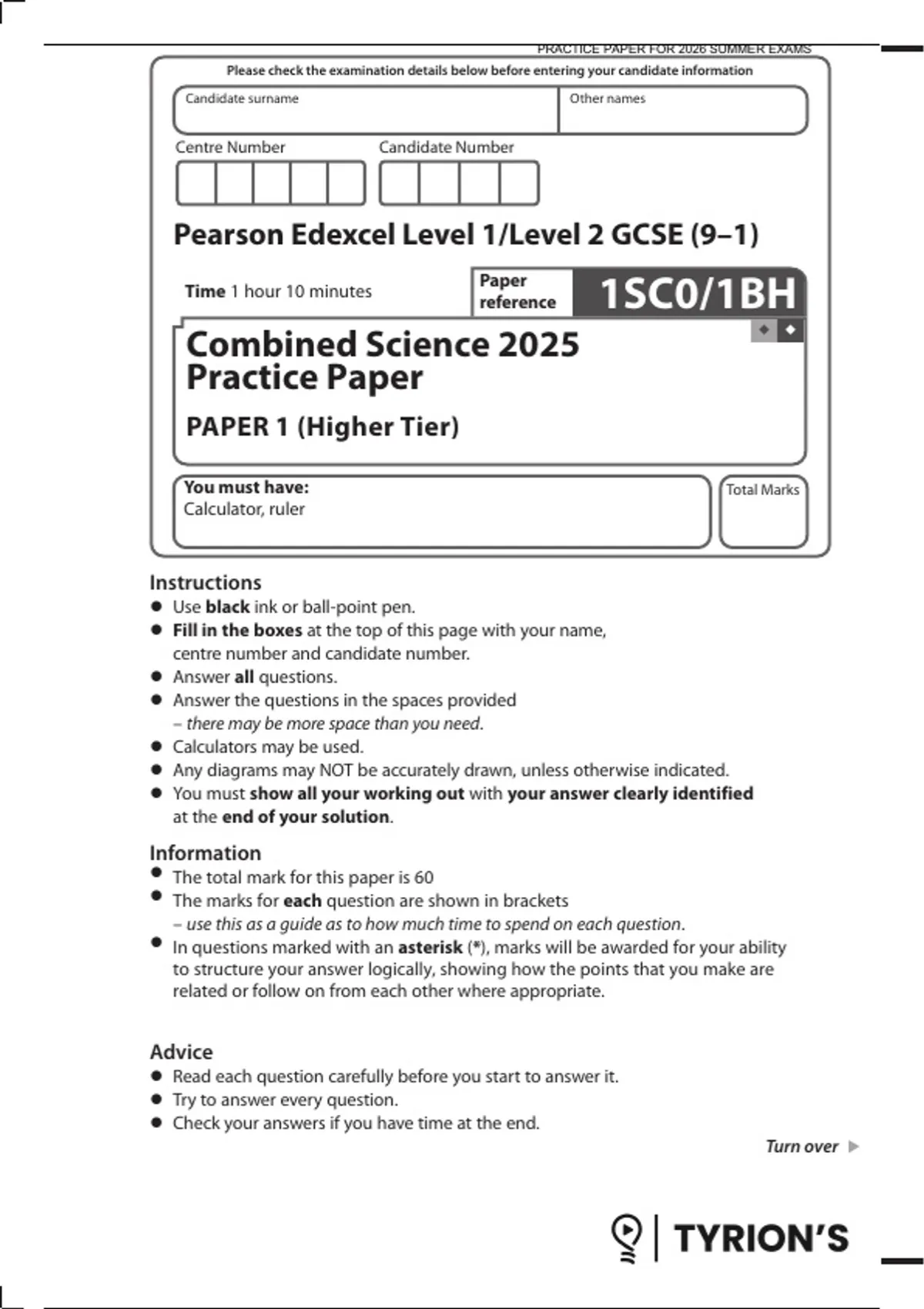 • The total mark for this paper is 60