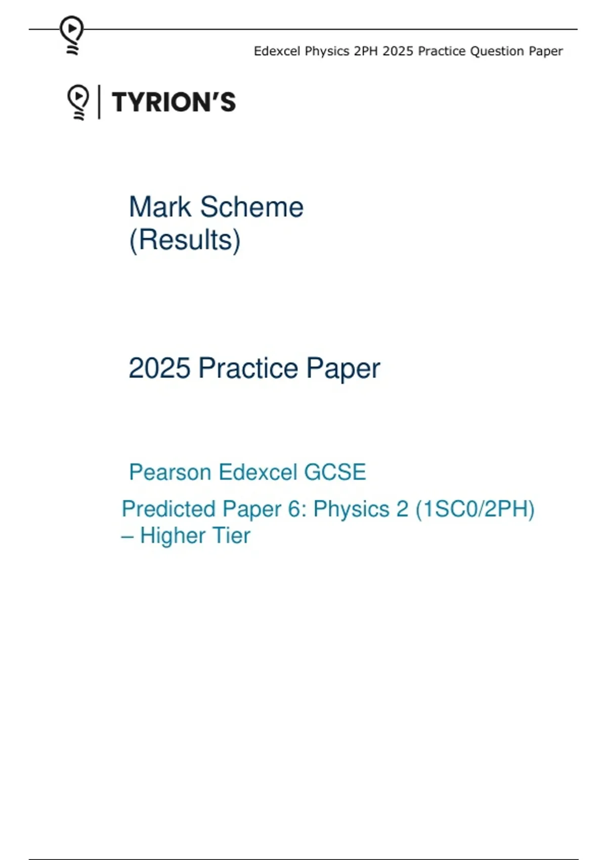 Predicted Paper 6: Physics 2 (1SC0/2PH)