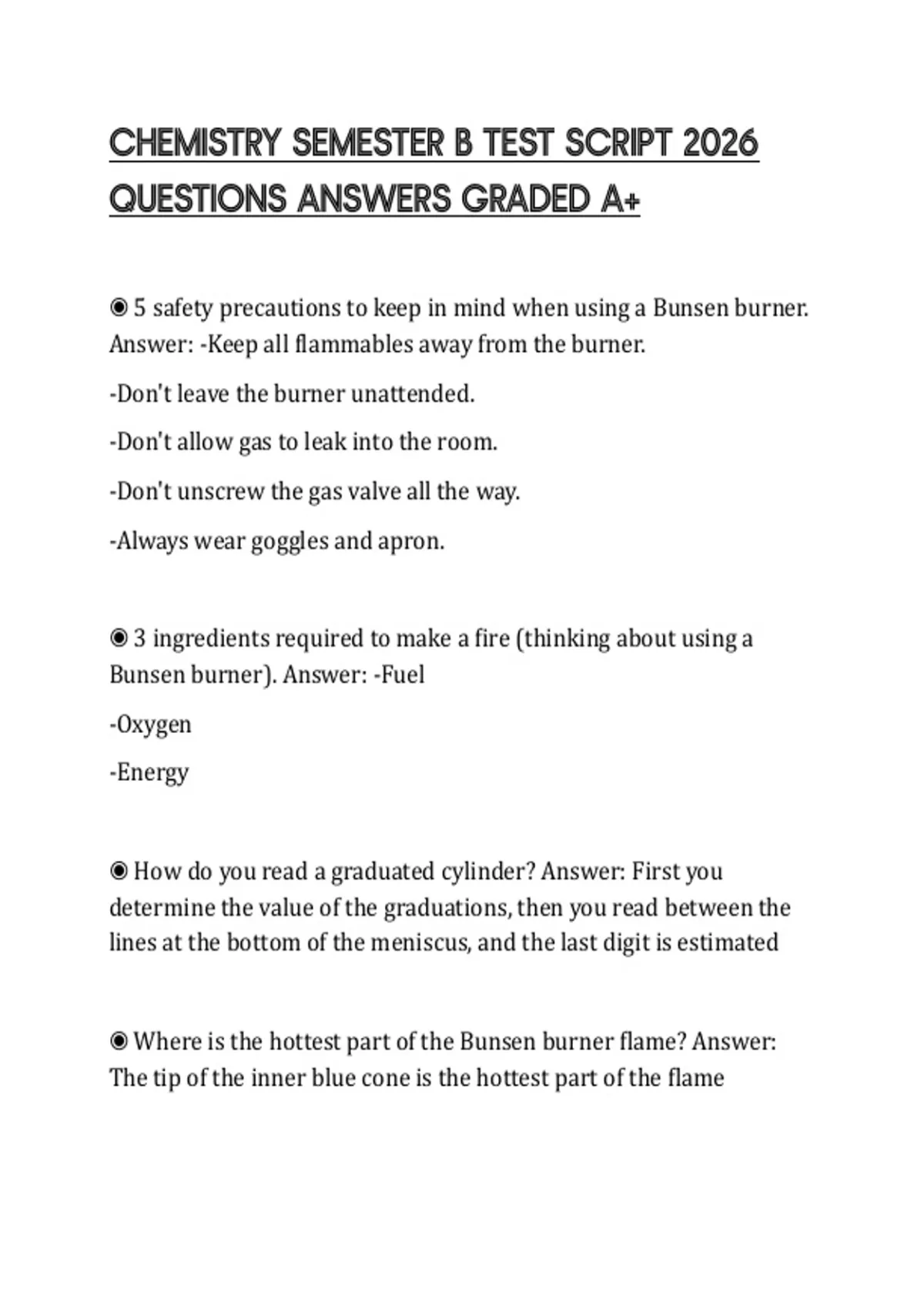 CHEMISTRY SEMESTER B TEST SCRIPT 2026 QUESTIONS ANSWERS GRADED A+