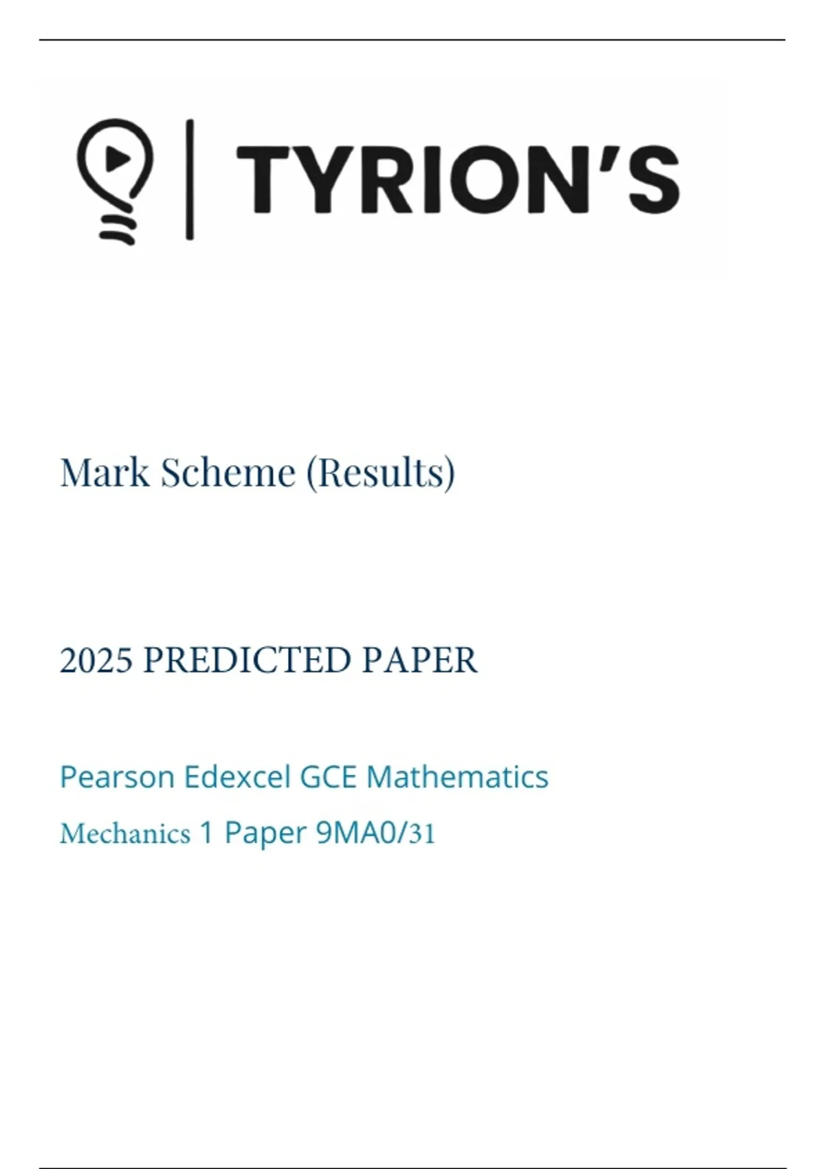 EDEXCEL A LEVEL MATHS 2025 PREDICTED PAPER 31 MECHANICS MS