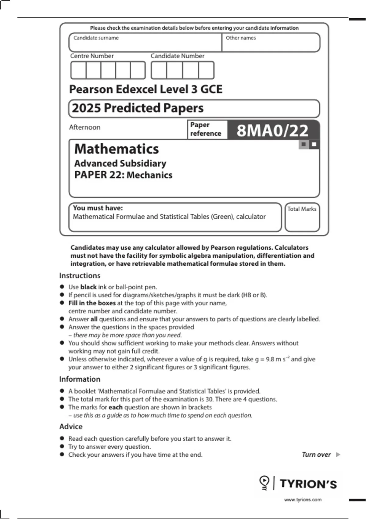 Candidates may use any calculator allowed by Pearson regulations. Calculators