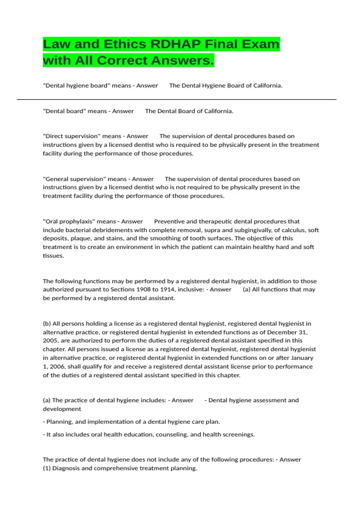 (a) The practice of dental hygiene includes: - Answer - Dental hygiene assessment and