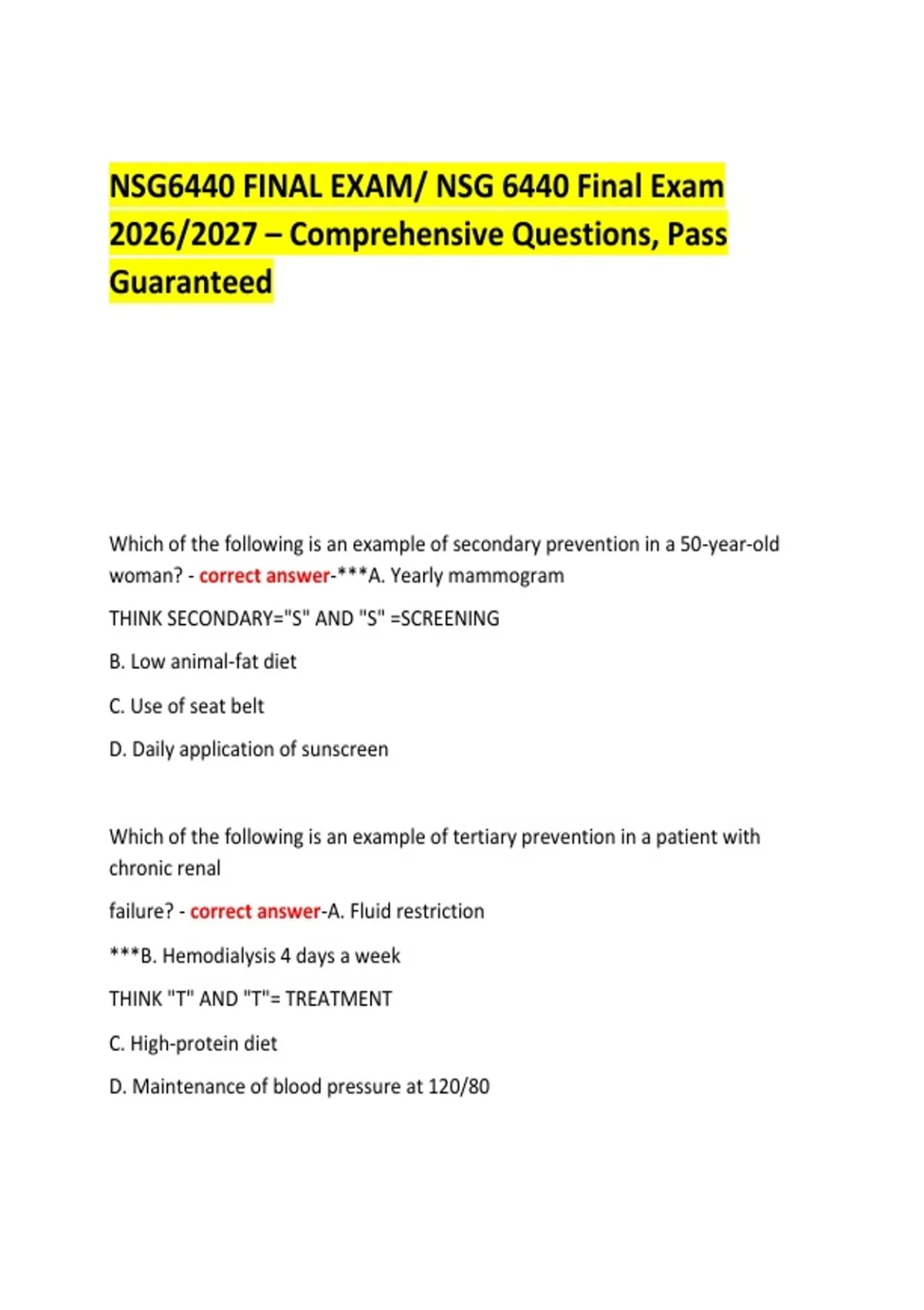 NSG6440 FINAL EXAM/ NSG 6440 Final Exam