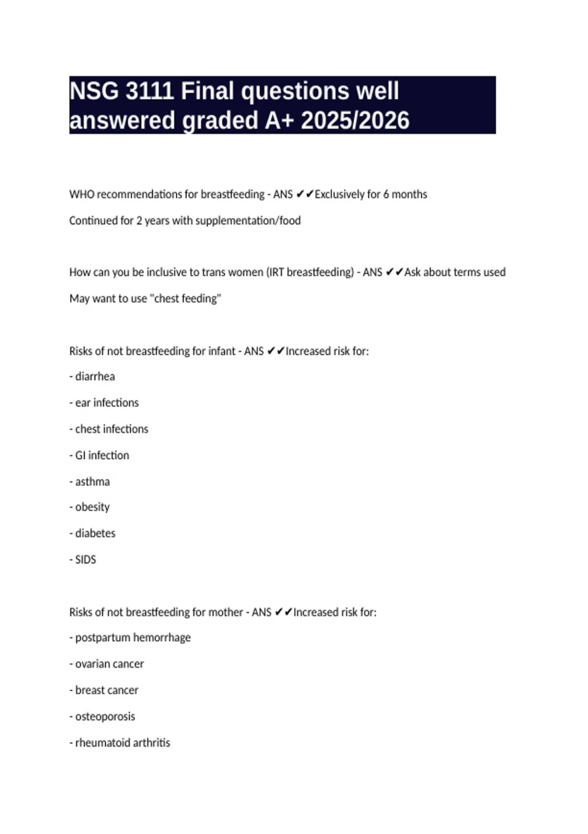 NSG 3111 Final questions well answered graded A+