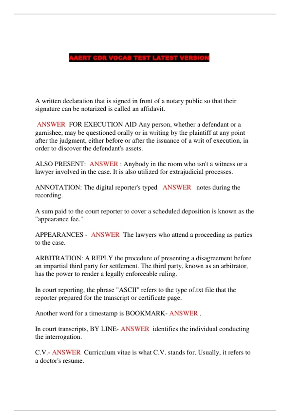 AAERT CDR VOCAB TEST LATEST VERSION