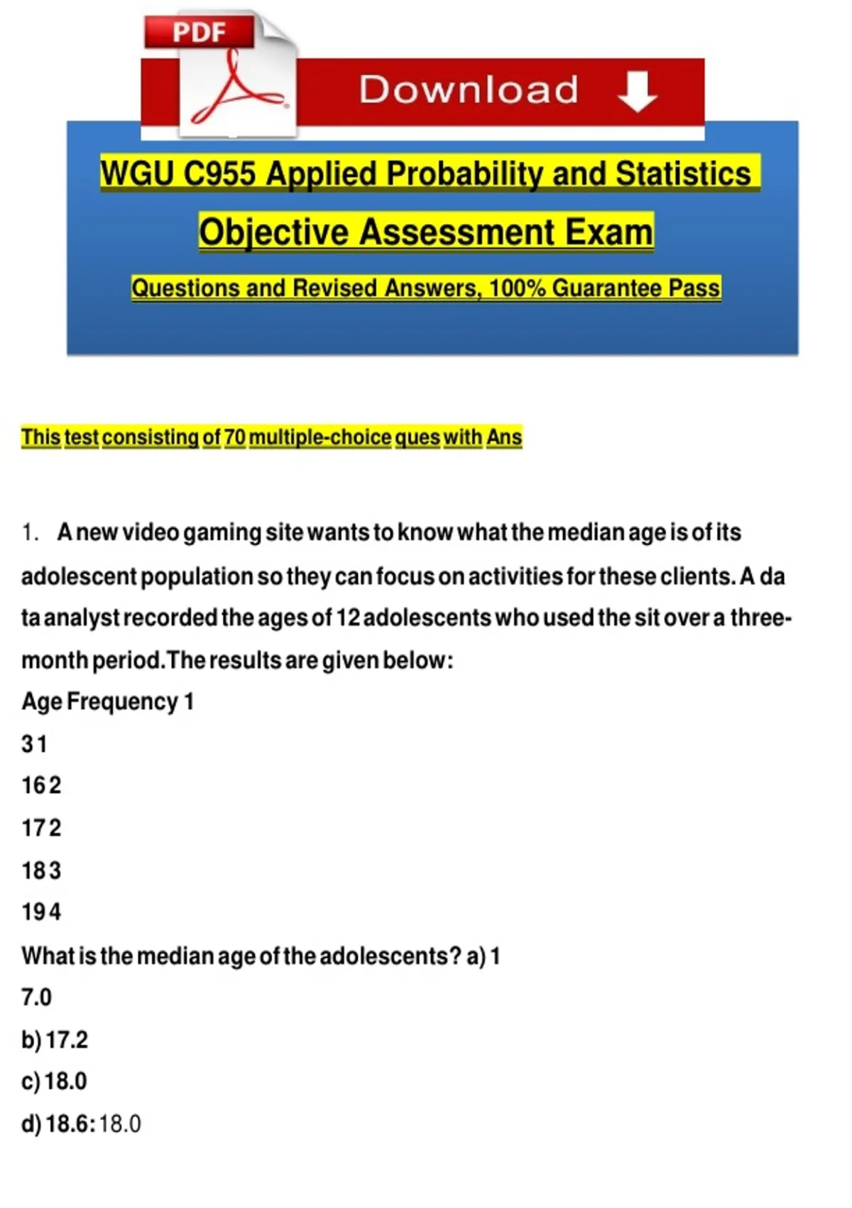 WGU C955 Applied Probability and Statistics Objective Assessment Exam Questions and Revised Answers, 100% Guarantee PassWGU C955 Applied Probability and Statistics Objective Assessment Exam Questions and Revised Answers, 100% Guarantee Pass