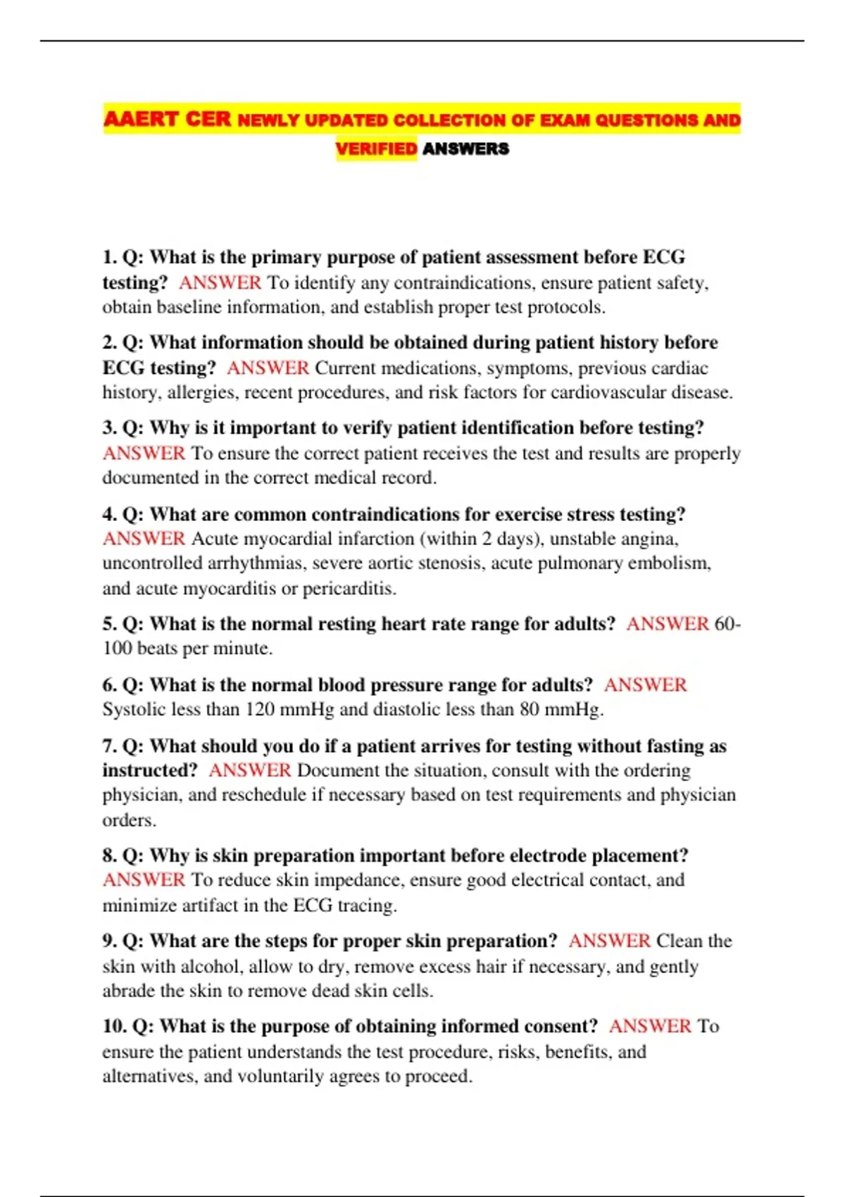 AAERT CER NEWLY UPDATED COLLECTION OF EXAM QUESTIONS AND