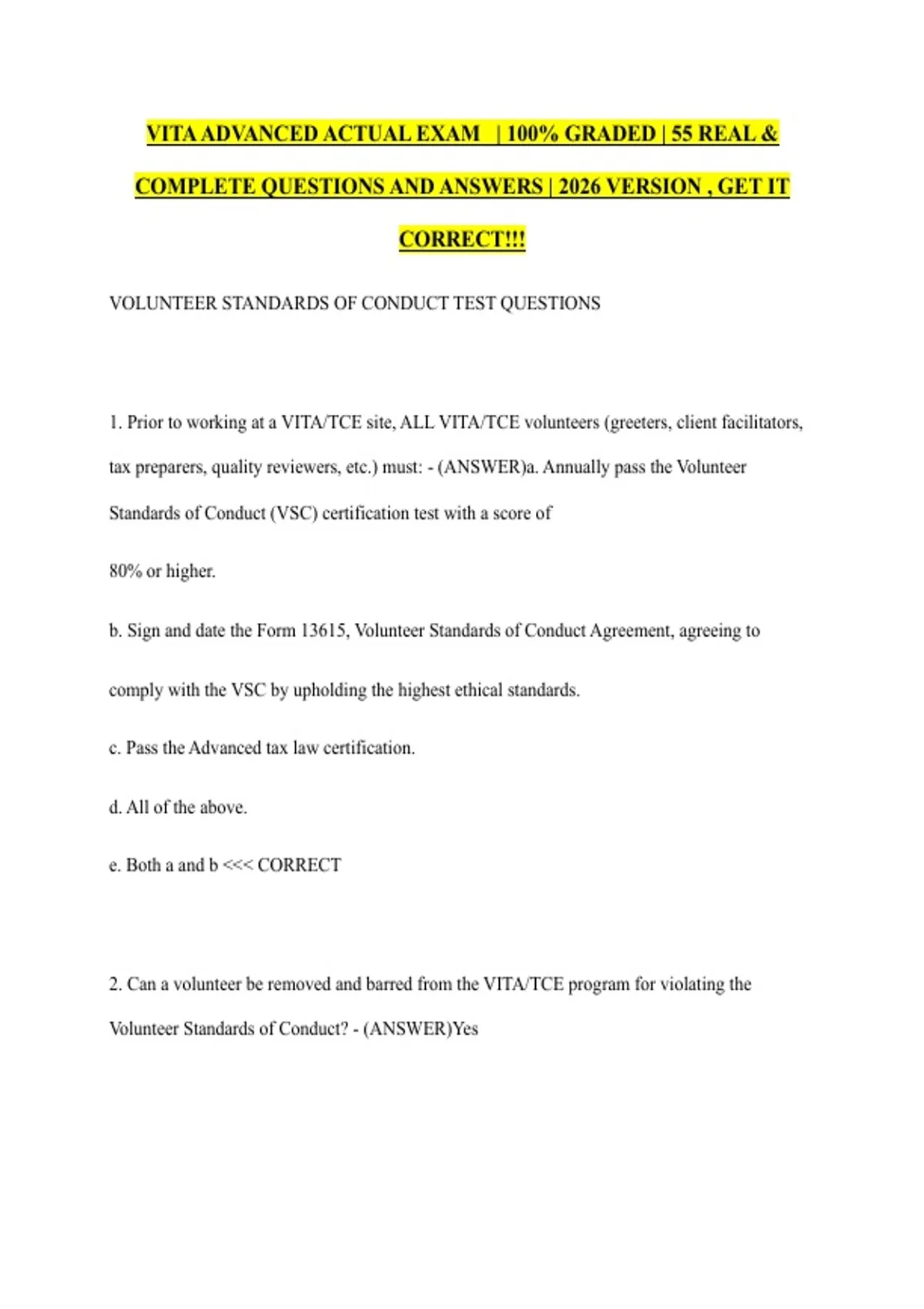 VITA ADVANCED ACTUAL EXAM | 100% GRADED | 55 REAL & COMPLETE QUESTIONS AND ANSWERS | 2026 VERSION , GET IT CORRECT!!!