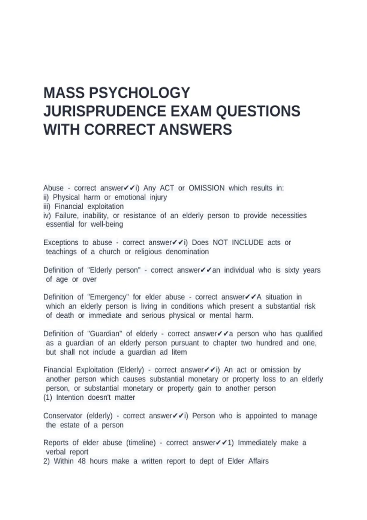 MASS PSYCHOLOGY JURISPRUDENCE EXAM QUESTIONS WITH CORRECT ANSWERS