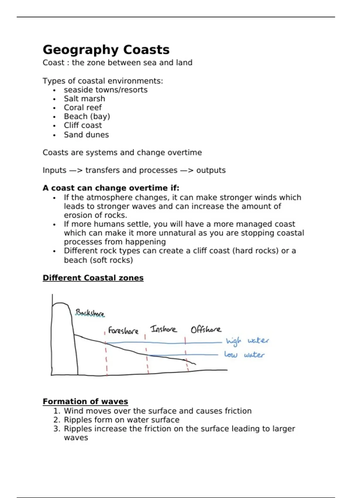 Summary Notes for geography coasts iGCSE Pearson Edexcel