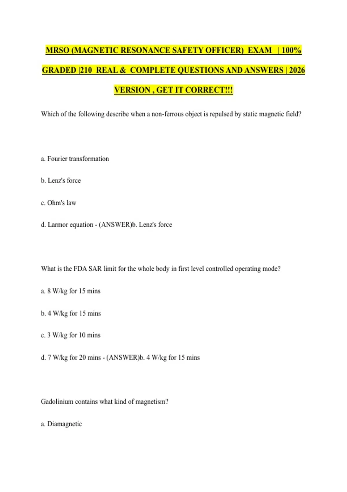 d. Paramagnetic - (ANSWER)c. Diamagnetic