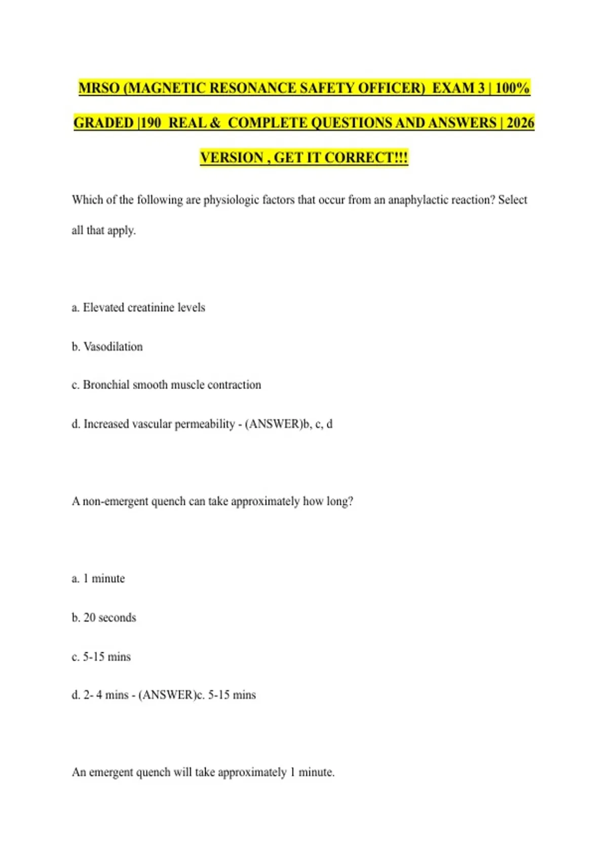 MRSO (MAGNETIC RESONANCE SAFETY OFFICER) EXAM 3 | 100% GRADED |190 REAL & COMPLETE QUESTIONS AND ANSWERS | 2026 VERSION , GET IT CORRECT!!!