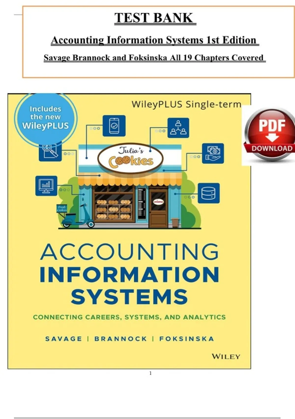This complete Test Bank for Accounting Information Systems: Connecting Careers, Systems, and Analytics (1st Edition) by Savage, Brannock, and Foksinska is an essential study resource for accounting and information systems students. The test bank covers ALL 19 chapters, including foundations of AIS, business processes, risk assurance, internal controls, cybersecurity, data analytics, and audit assurance. It is ideal for exam preparation, quizzes, homework, and practice tests in undergraduate and graduate accounting programs.