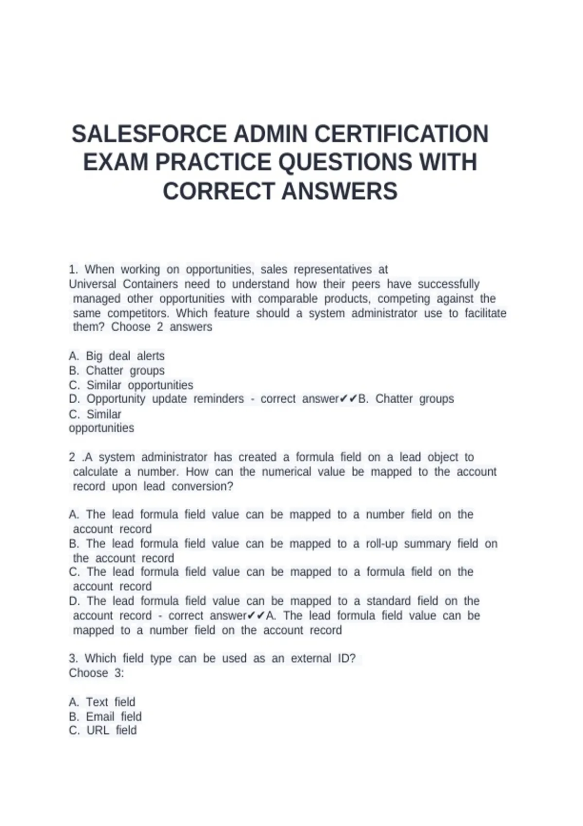 SALESFORCE ADMIN CERTIFICATION EXAM PRACTICE QUESTIONS WITH CORRECT ANSWERS