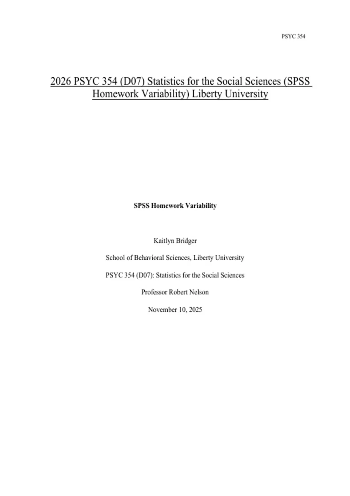 2026 PSYC 354 (D07) Statistics for the Social Sciences (SPSS