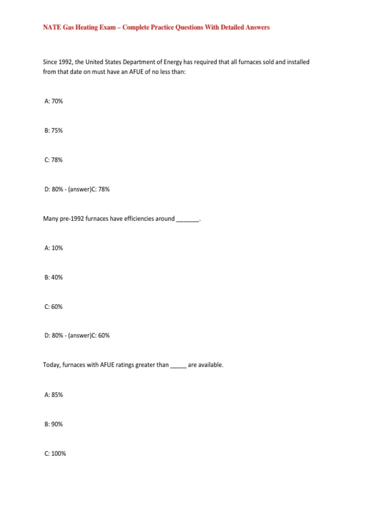 ,NATE Gas Heating Exam – Complete Practice Questions With Detailed Answers