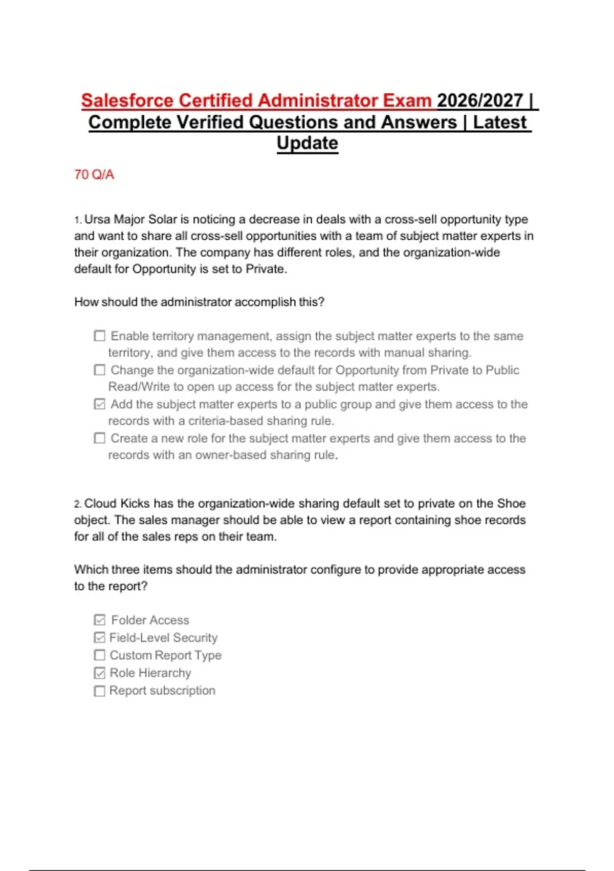 Complete Verified Questions and Answers | Latest