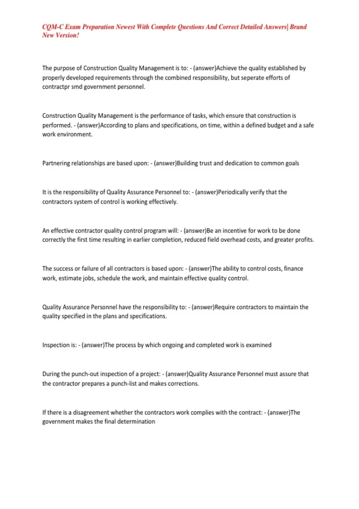 CQM-C Exam Preparation Newest With Complete Questions And Correct Detailed Answers| Brand