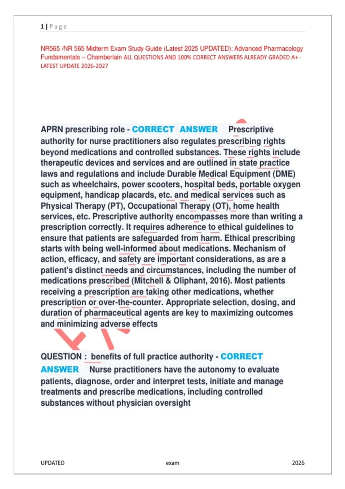 NR565 /NR 565 Midterm Exam Study Guide (Latest 2025 UPDATED): Advanced Pharmacology