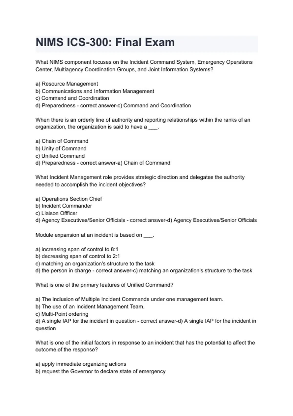 Full Topic Coverage- NIMS ICS-300 Final Exam Page 2Full Topic