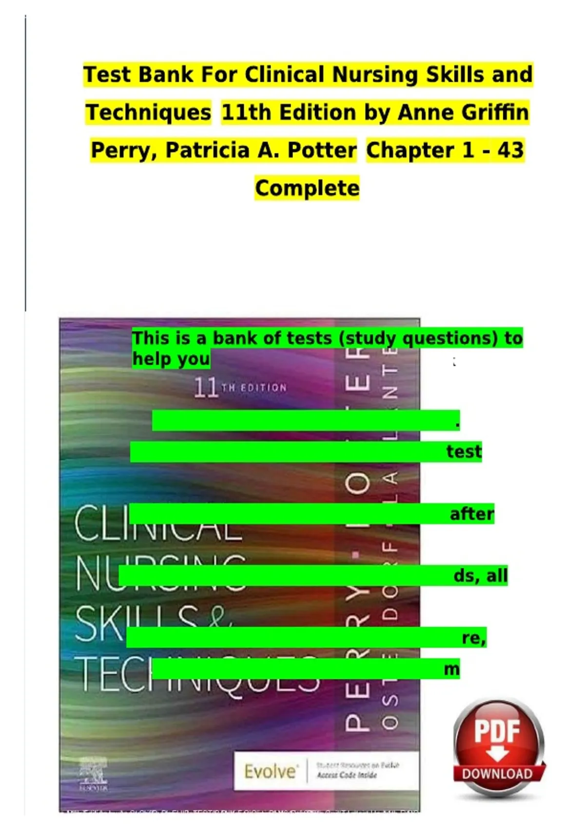 Master essential clinical nursing skills with Clinical Nursing Skills and Techniques Anne Griffin Perry 11th Edition 2025/2026 Full Test Bank with Solution, featuring complete questions and answers to enhance practical knowledge and excel in exams.