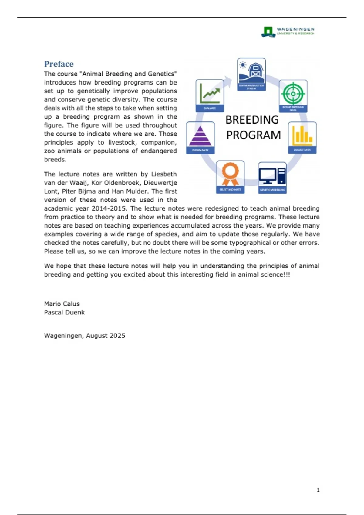 academic year 2014-2015. The lecture notes were redesigned to teach animal breeding