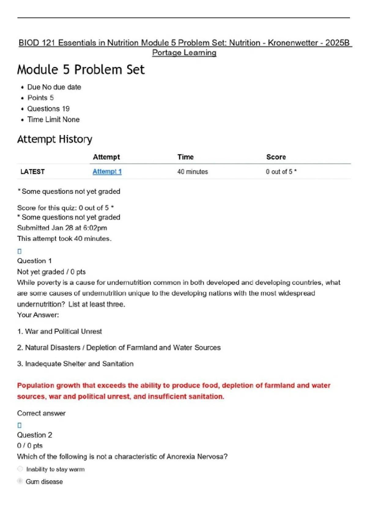 BIOD 121 Essentials in Nutrition Module 5 Problem Set: Nutrition - Kronenwetter - 2025B Portage Learning