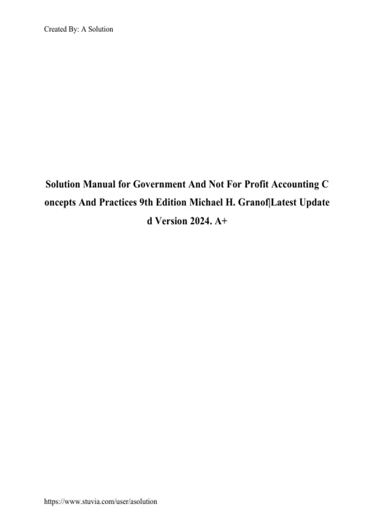 Solution Manual for Government And Not For Profit Accounting Concepts And Practices 9th Edition Michael H. Granof|Latest Updated Version 2024 . A+
