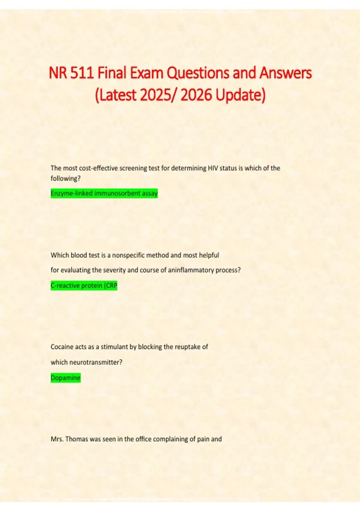 ,Page 2 of 26 NR 511 Final Exam Questions and Answers (Latest 2025- 2026 Update) Page 2