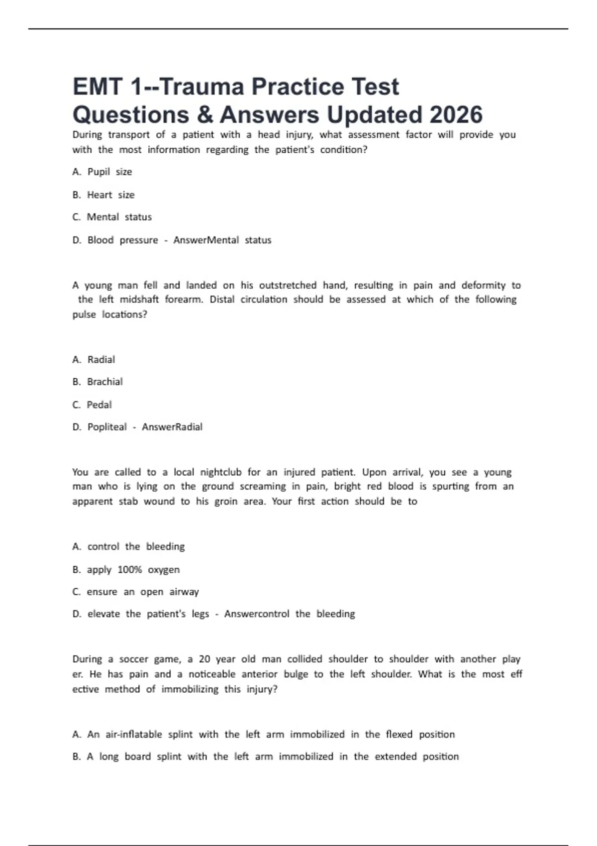 EMT 1--Trauma Practice Test