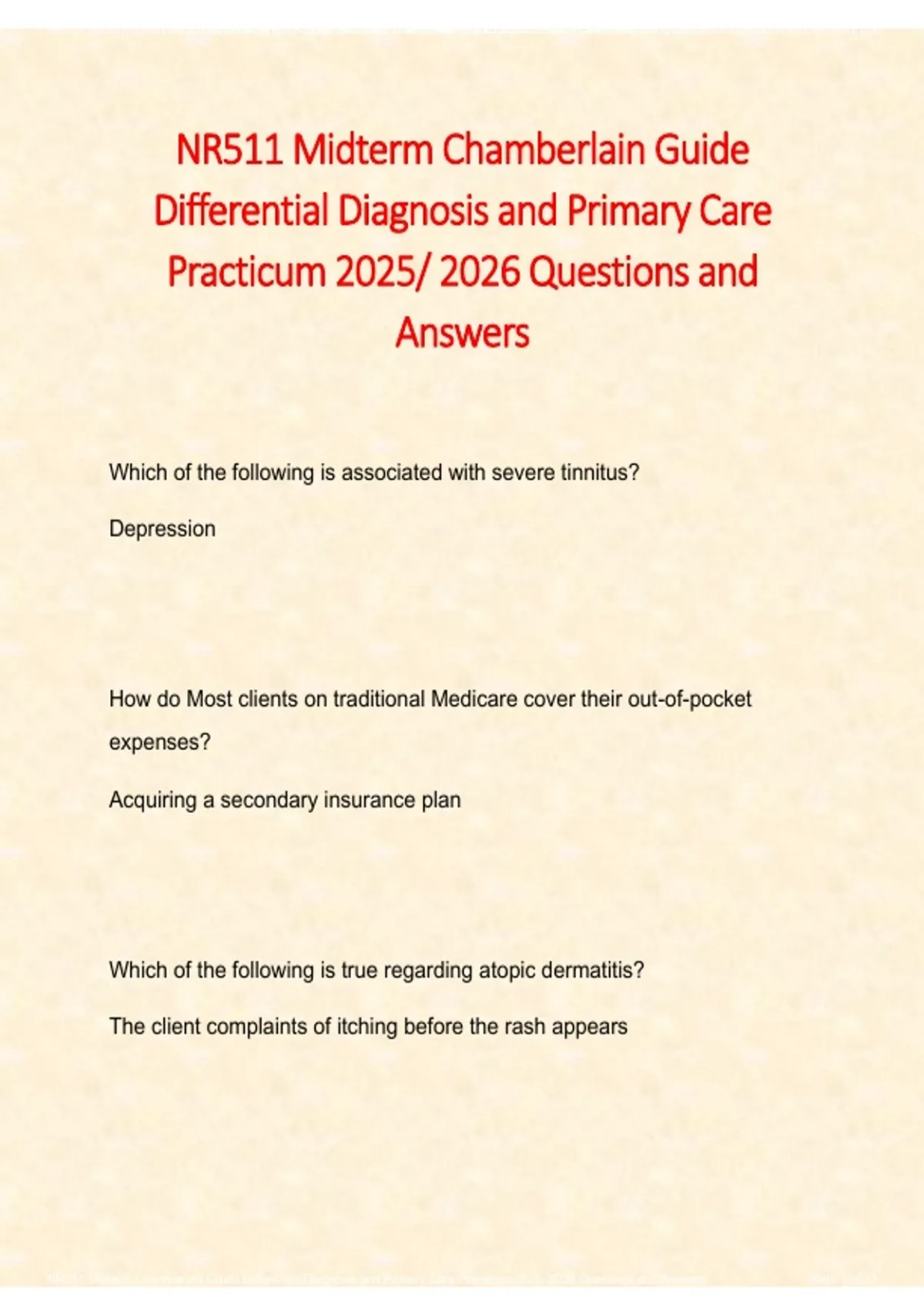 NR511 Midterm Chamberlain Guide Differential Diagnosis and Primary Care Practicum 2025- 2026 Questions and Answers Page 3 of 23