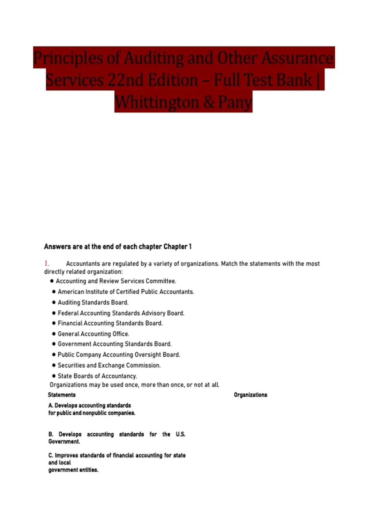 1. Accountants are regulated by a variety of organizations. Match the statements with the most