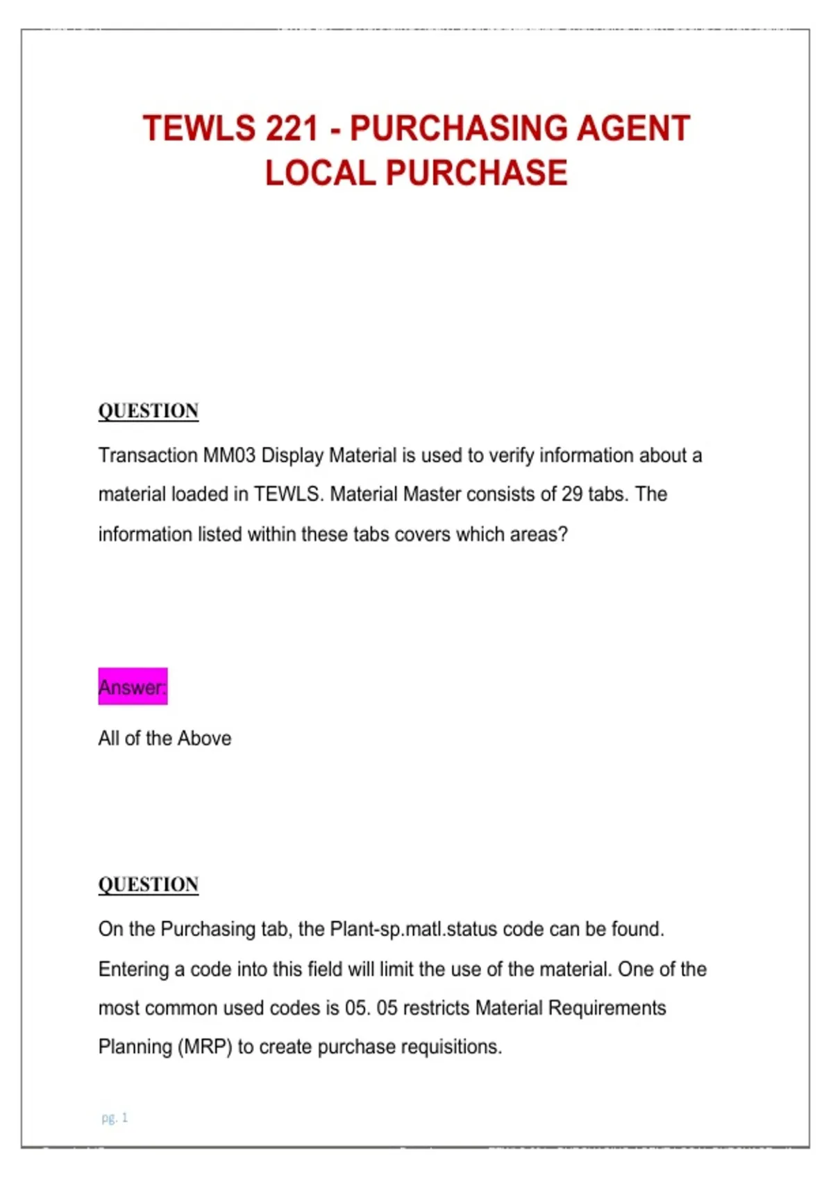 Page 1 of 17 TEWLS 221 - PURCHASING AGENT LOCAL