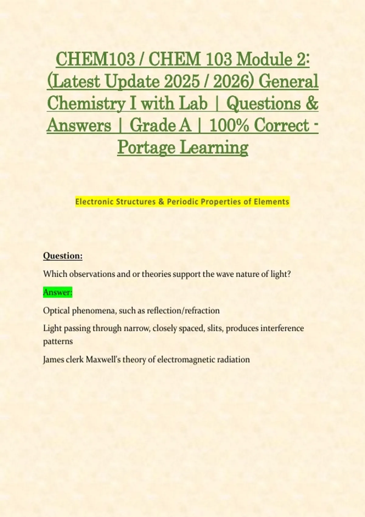 Chemistry I with Lab | Questions &
