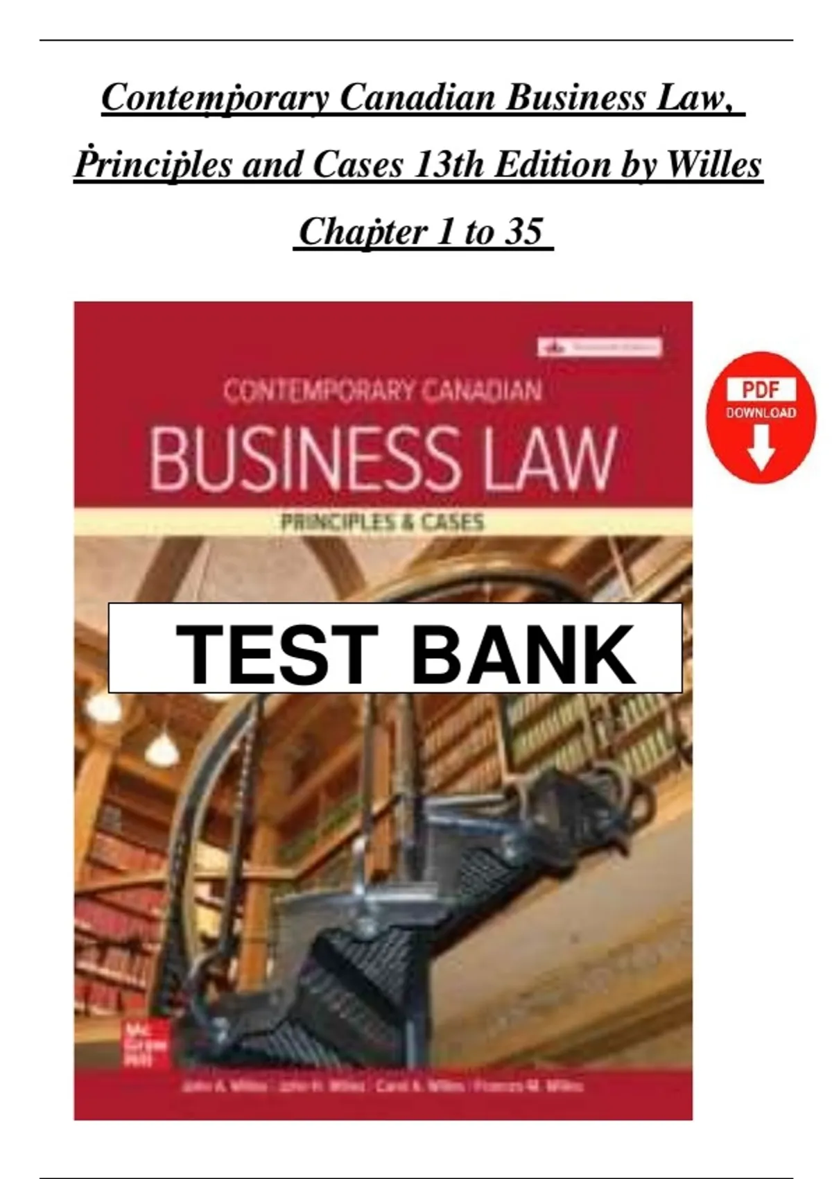Full Test Bank for Contemporary Canadian Business Law: Principles and Cases 12th & 13th Editions by John A. Willes and John H. Willes Complete Coverage (Chapters 1-35) Verified Questions & Correct Answers Business Law / Legal Studies / Canadian Commerce U
