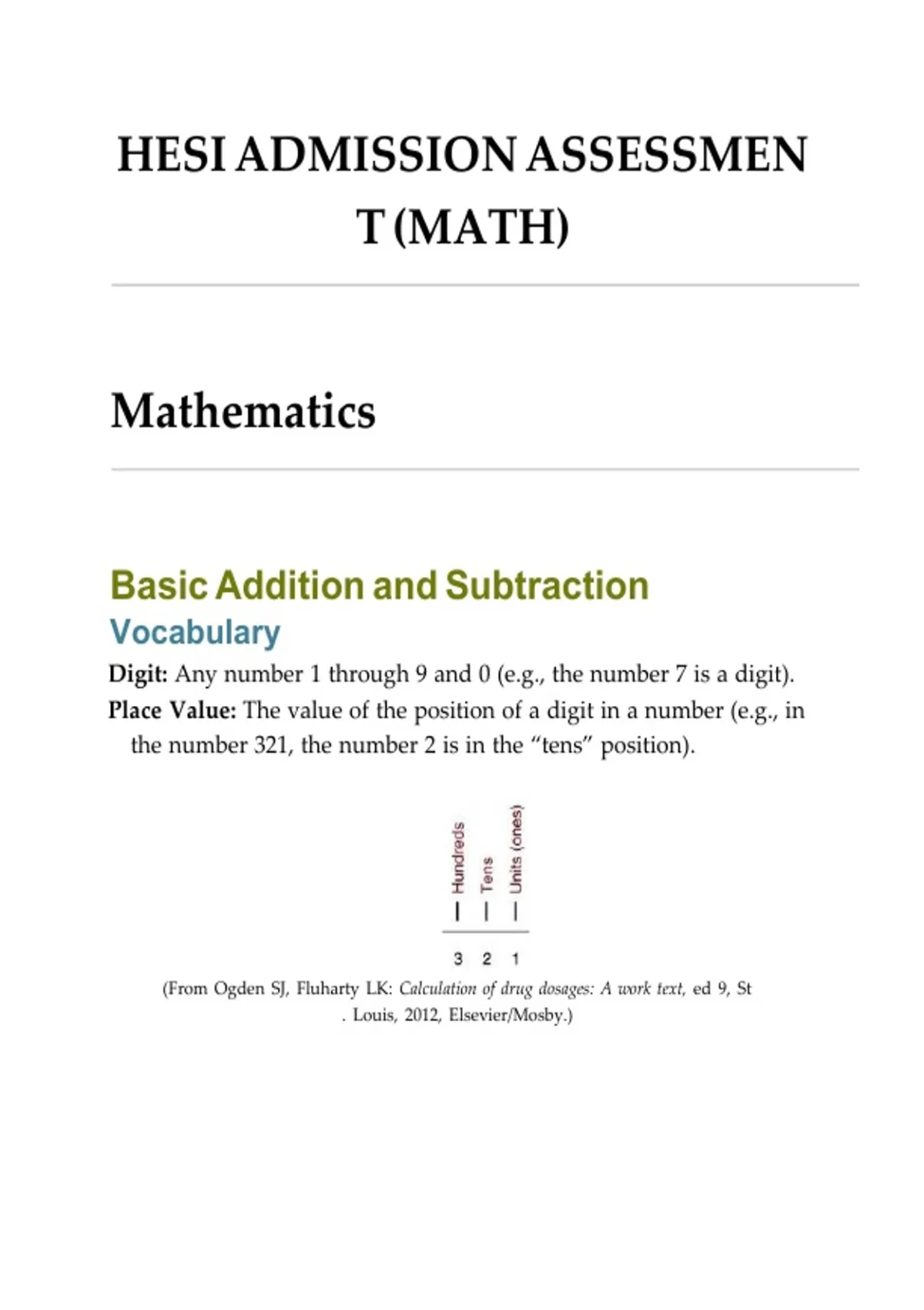 HESI (Entrance Exam) – MATH Questions and Correct Answers